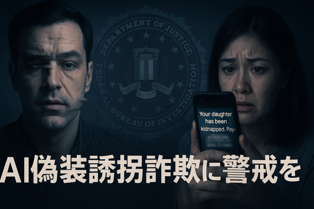 アメリカ連邦捜査局(FBI)は2025年12月、新たなネット詐欺の手口に対する注意喚起を発表しました。その内容は、生成AIを使って誘拐されたかのように見せかけた偽の映像を作成し、家族から身代金を騙し取るというものです。