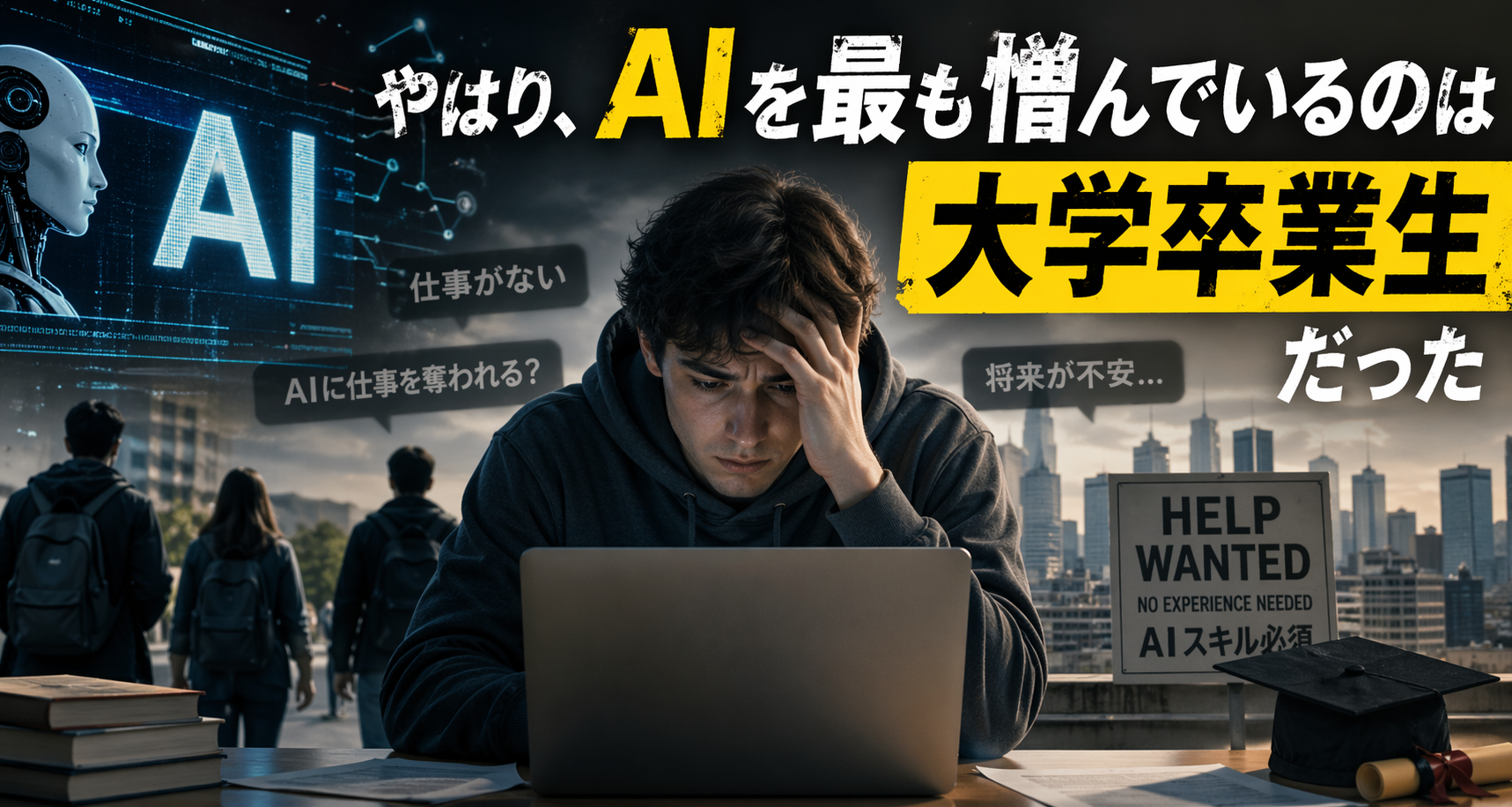 現実にはまだ全面的な置き換えは起きていないとしても、その「予測」だけで人々の感情はすでに変わってしまった。若者にとって、AIは潜在的な競争相手として存在している。