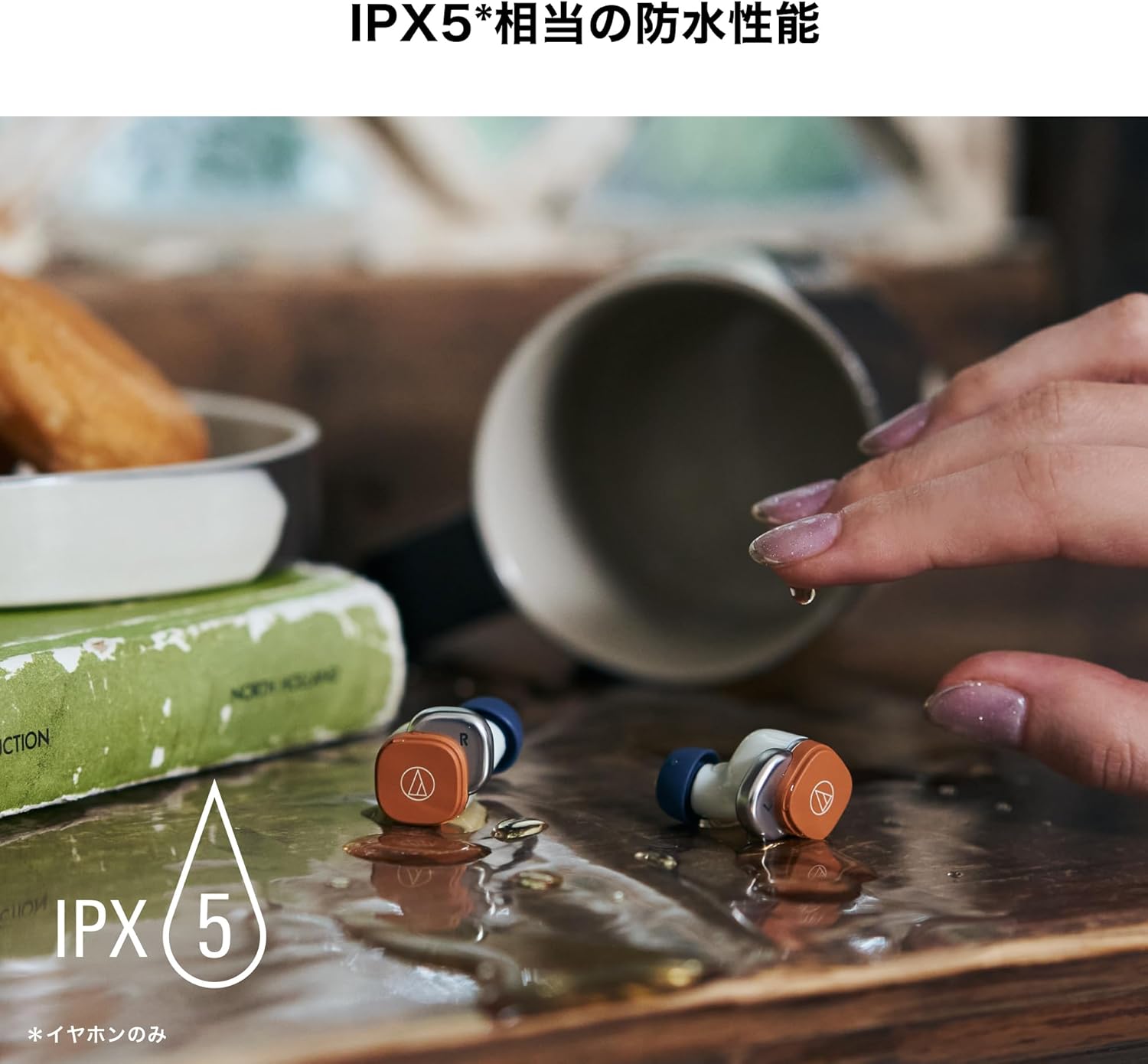 防水性能はIPX5 相当を備え、雨や汗による濡れを気にせず使用でき、使用後に水洗いして清潔に保てるため、スポーツシーンでも安心して使えます。