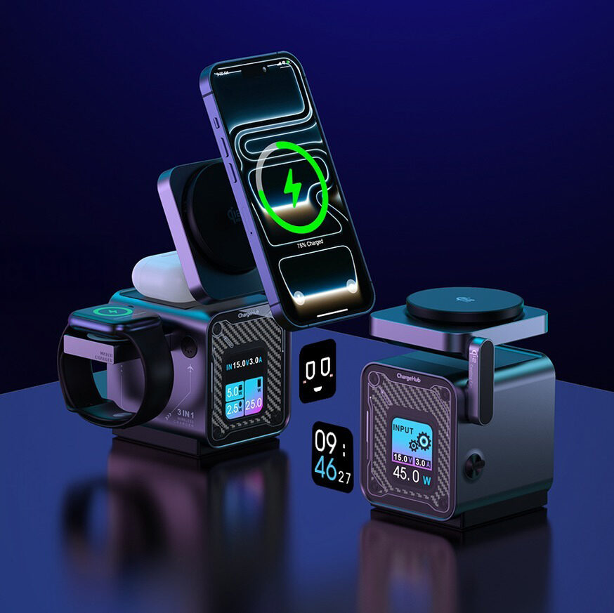 ChargeUnie Gen2|リアルタイムスマート UI 搭載のデスクトップ型 3-in-1 ワイヤレス充電器
