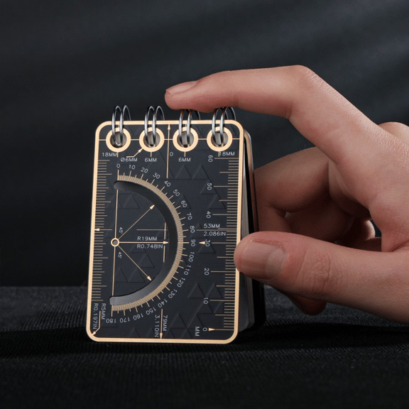 さらに、この FR4 カバーは「単なる保護材」ではなく、完全な計測ツールセットとして設計されています。どんな場面でも役立つ機能が凝縮されています。例えば、インチとミリメートルの両方の目盛りが付いた「デュアルルーラー」は、サイズを確認したり、レイアウトを調整したりする際に瞬時に活用できます。180 度の「分度器」は、正確な角度計測や曲線の描画に役立ち、技術的なスケッチから創造的なデザインまで対応。「センターライン(中心線)」は、ページやデザインの中心を迅速に見つけ、左右対称のレイアウトを作成する時のショートカットになります。また、「角丸ガイド」はカッターやテンプレートを使わずに、滑らかな曲線をトレースできる便利な機能で、デザインの仕上がりを一段上げてくれます。