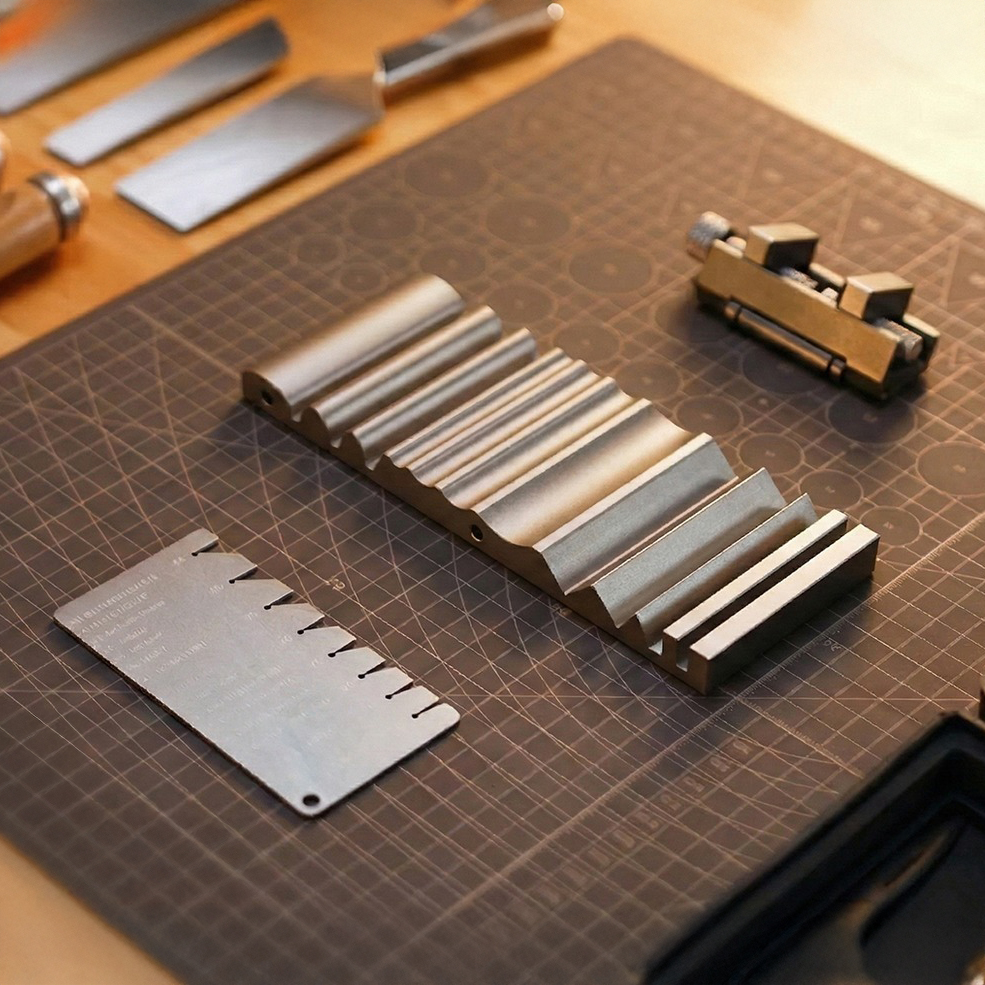 こうした研磨作業の根本的な課題を解決するために開発されたのが、EdgeFormです。EdgeForm は、必要な研磨機能を一つのセットに集約し、機械的な構造で研磨角度を固定することで、使用者の技量や経験に左右されることなく、誰もが均一で精密な刃付けを実現できるよう設計されたポータブル精密研磨ツールです。単なる研磨補助器具ではなく、木工作業場、DIY スペース、家庭のキッチンなど様々なシーンに対応し、持ち運びやすいコンパクトさを保ちながら、プロフェッショナル並みの研磨精度を発揮することを目指して開発されています。木工職人、家具製作者、DIY 愛好家、ハンドツール愛好家など、日頃から刃物を扱い、切れ味の精密さを重視する方にとって、研磨作業のストレスを軽減し、作業効率を高める欠かせないツールとして設計されているのが大きな特徴です。
