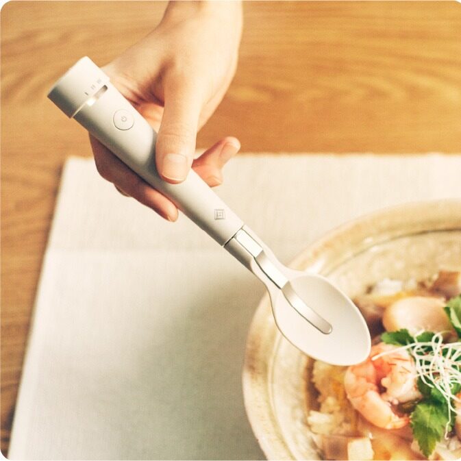 ELECTRICSALT Spoon は、微弱電気の技術を活用して減塩食の美味しさを最大限に引き出す、革新的な食器です。いつもの食器を置き換えるだけという簡便さ、幅広い料理への対応性、3 段階で調整可能な電流強度、コンパクトで使いやすいデザインなど、日常の食生活に溶け込みやすい多くの特徴を備えています。