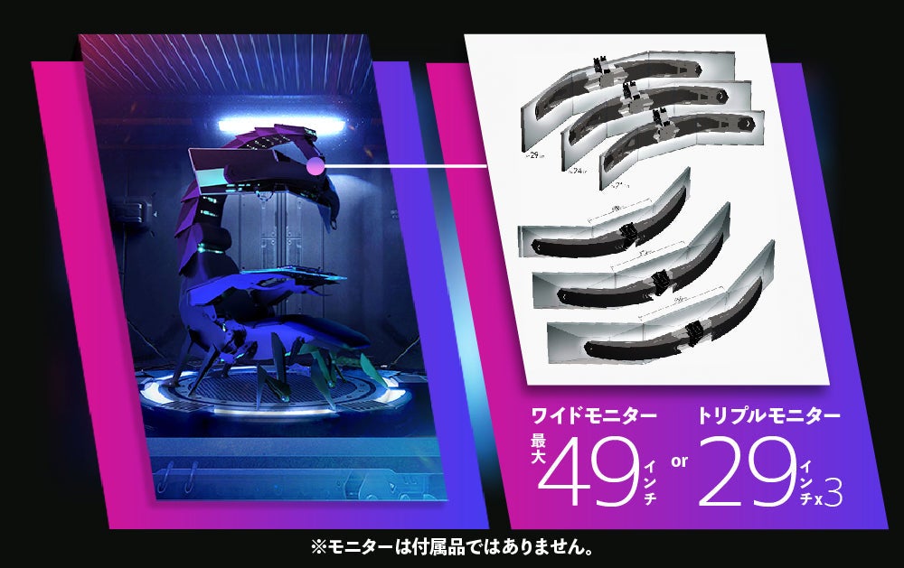 ※最大49インチまたは43インチの超ワイドサイズのシングルモニター、または29インチのトリプルモニターセットアップを使用可能。