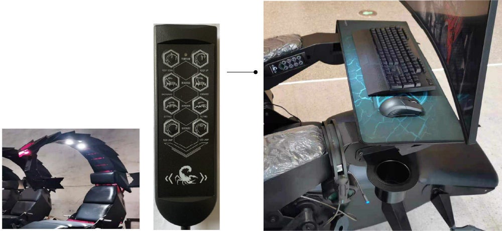 コントロールパネルで操作ができる複数のLED/RGBライトが機体に配置され、