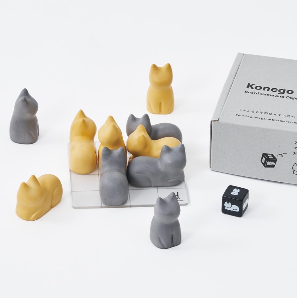 「コネゴ」は、ネコの習性を取り入れた4マス並べボードゲームとしての機能と、デザイン性の高いオブジェとしての機能を両立させた、非常にユニークな商品です。シンプルながらも奥深い遊び方、コンパクトで持ち運びやすいサイズ、手作りの石膏駒に込められた温かみ、さらに他商品との組み合わせ可能性など、多くの魅力を凝縮しています。