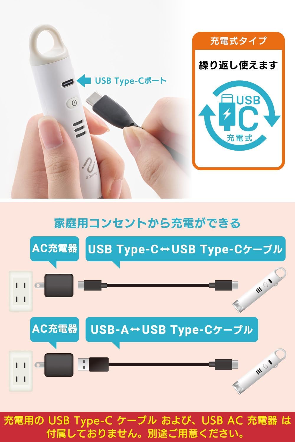 次に、従来の電池式防犯ブザーの最大の課題を解決したUSB-C 充電対応について詳しく見ていきましょう。これまでのコイン電池式製品では、3 ヵ月ごとに 2 個の電池を交換する必要があり、その手間だけでなく、長期的に見ると電池購入のコストも無視できませんでした。LGT-LWUCSS1WHM は、この問題を根本的に解決するために USB-C インターフェースを採用しています。現在、スマートフォンやタブレット、ノートパソコンなど、多くのモバイルデバイスが USB-C 充電をサポートしているため、充電ケーブルを別途用意する必要がありません。外出先でもスマホの充電ケーブルを共用して充電できるので、非常に便利です。