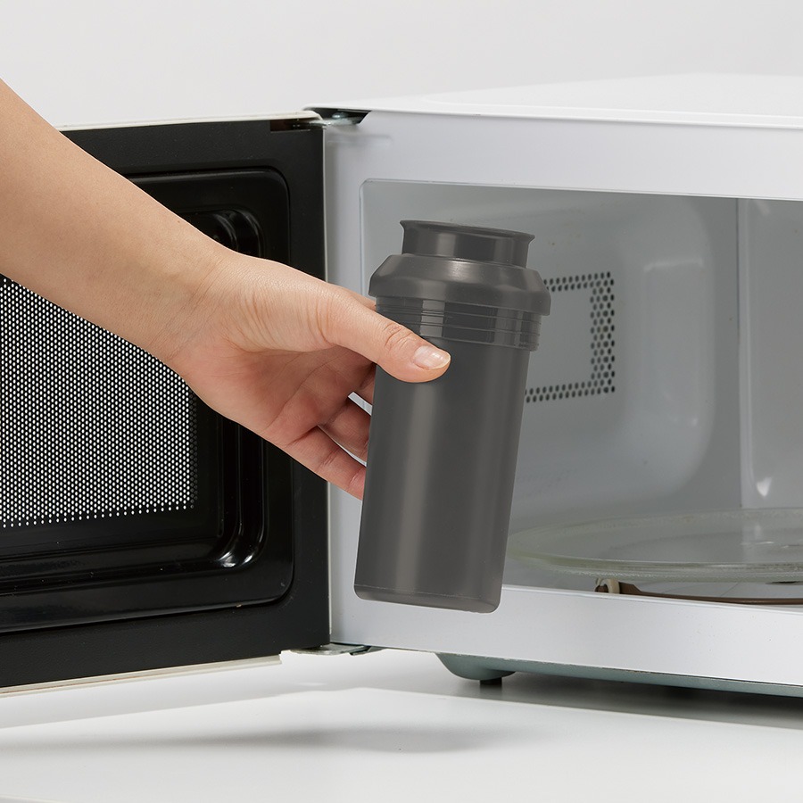 ここで疑問が湧くかもしれません。「樹脂素材のインナーボトルは、加熱しても安全なのだろうか?」と。このインナーボトルは電子レンジ使用に適合した樹脂で製造されているため、加熱時に有害な物質が溶出する心配はありません。日常的に使うレンジ対応食器と同じ安全性を確保していることから、安心して使用できるのが大きなメリットです。