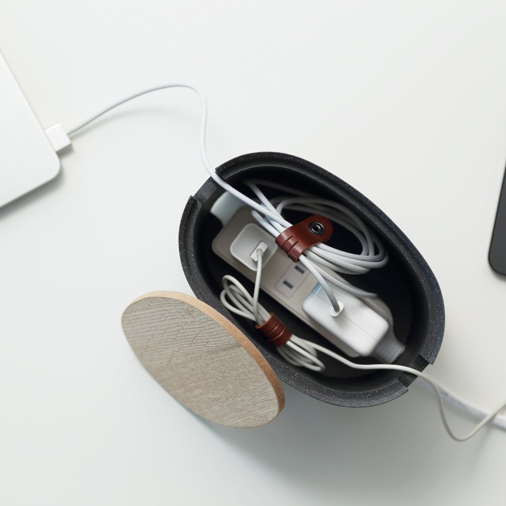 「Oval Box Cable Storage」は、ケーブルの散乱が問題となる現代人にぴったりの収納ツールです。コンパクトなサイズながらも、専門的な構造によって多くのケーブルを整理できる実用性と、天然素材を融合させた高級感のあるデザインを兼ね備えています。底面の穴と滑り止め、3 色のカラーバリエーションなど、細かな部分まで考慮された設計が特長です。