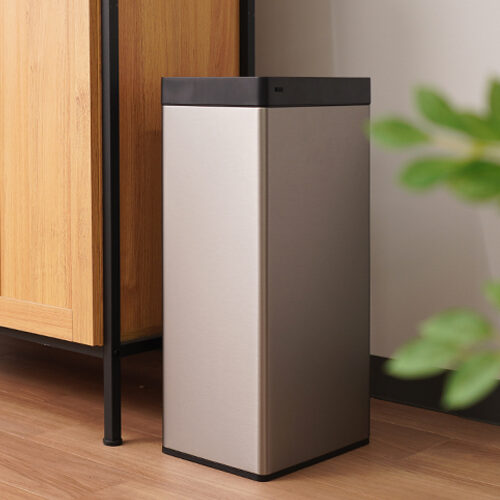 本体の素材と仕上げには、ヘアライン加工を施したステンレスが採用されており、見た目の高級感と実用的な耐久性を両立している。ヘアライン加工は細かい傷を目立ちにくくする効果があり、日常的に触れる機会が多いゴミ箱において、長期間美しい外観を保つことができる。また、指紋が付きにくい特性も備えており、布で軽く拭き取るだけで清潔な状態を維持でき、お手入れの手間が大幅に削減される。スタイリッシュなシルバーのボディは、モダンなキッチンからナチュラルテイストのリビングまで、あらゆるインテリアに自然に溶け込み、生活感を抑えた上品な雰囲気を演出する。本体重量は約 2.6kg、梱包状態でも約 3.7kg と軽量設計になっており、女性や高齢者でも無理なく持ち運ぶことができる。掃除の際に本体を移動させたり、部屋ごとに使い分けたりする際にも負担が少なく、機能面だけでなく物理的な使いやすさまで徹底的に配慮されている。