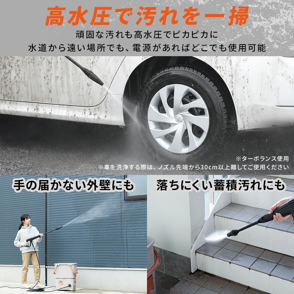洗浄力に関しては、SBT-751 は従来品と比べて最大圧力が 31% アップした高性能を誇り、最大吐出圧力が10MPaに達する過去最大のパワーを実現しています。この高い水圧は、ピンポイントで頑固な汚れを一気に吹き飛ばすことができるだけでなく、広範囲の汚れにも効率的に対応できるため、洗浄作業の時間を大幅に短縮できます。例えば、車のボディにこびりついた虫の死骸や鳥のフン、コンクリートの床に付着した油汚れ、金属製フェンスの錆び汚れなど、通常の水洗いでは落とせないような頑固な汚れでも、SBT-751 の強力な水圧で簡単に除去できます。