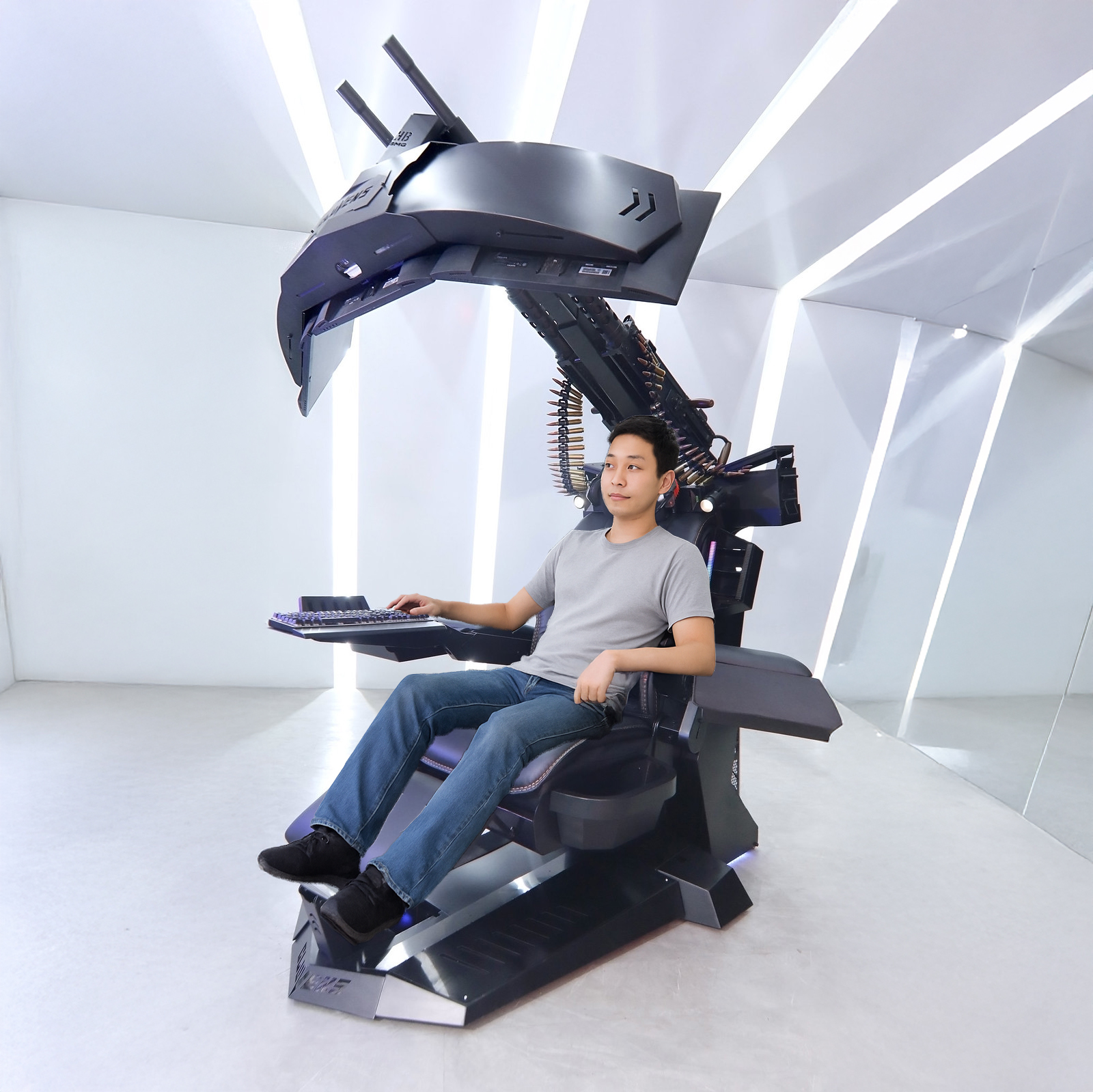 名の通り、M2HB重機関銃をイメージしたタクティカルなデザインが目を引くが、この製品の本質は“美学”と“機能”の融合にある。重厚な造形美と、最先端の電動制御・映像出力サポートを搭載したこの製品は、単なる「椅子」でも「デスク」でもない。そこには、“コクピット”と呼ぶにふさわしい没入環境が存在する。